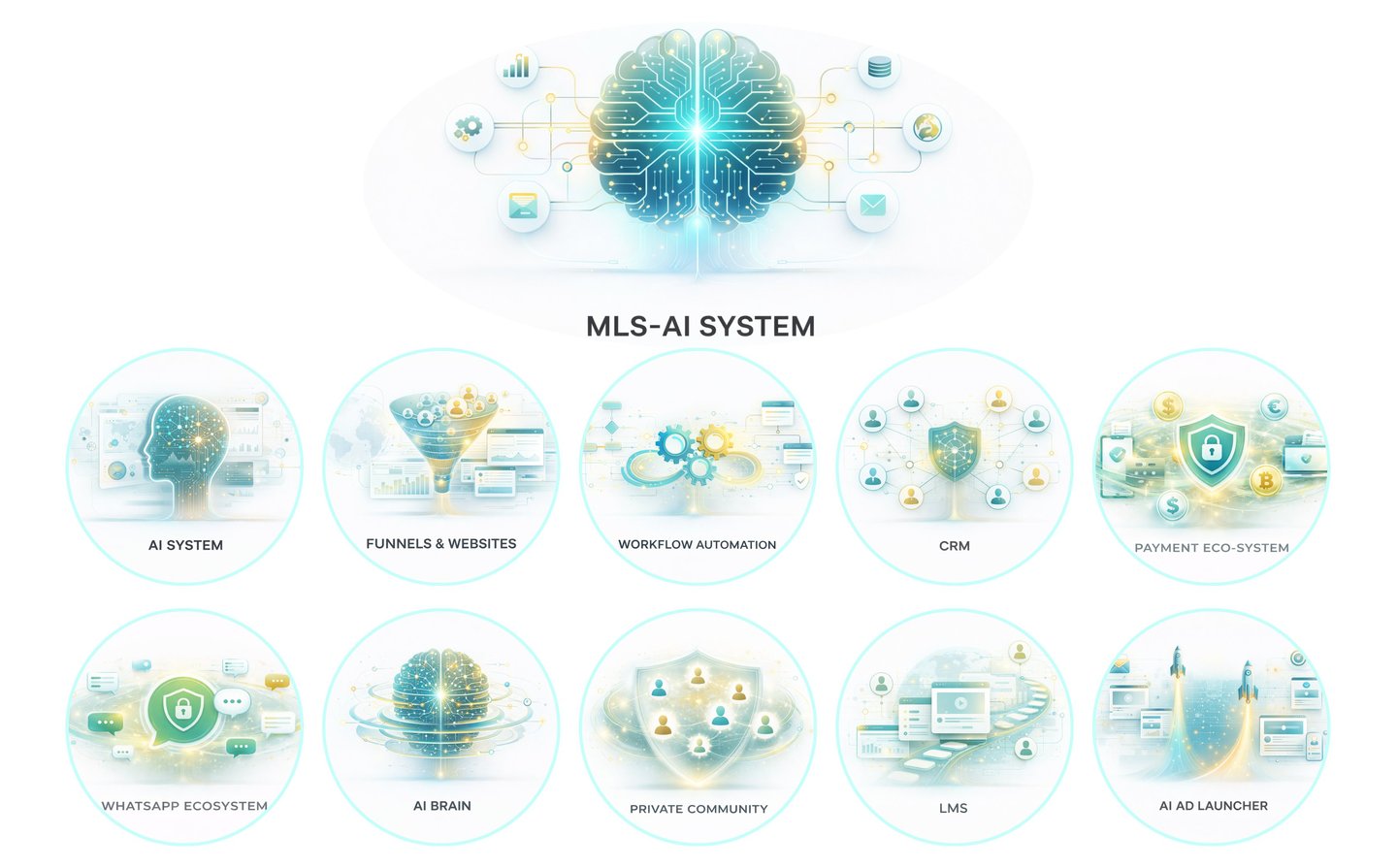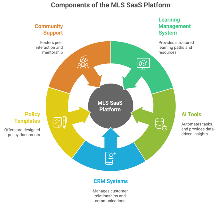 You receive access to the MLS SaaS platform, LMS content, AI dashboards, templates, mentoring sessions, community support, and calendar-based MLS-Support for technical, strategy, and policy guidance throughout your leadership journey.