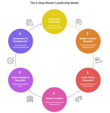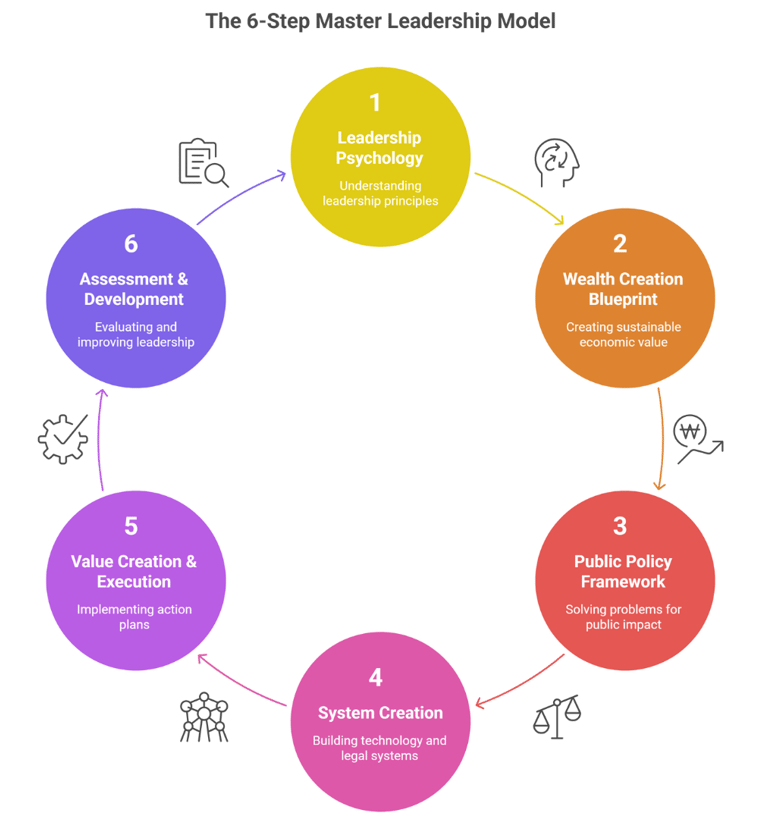The Master Leader System integrates leadership psychology, economics, public policy, technology, and sustainability into one structured journey.